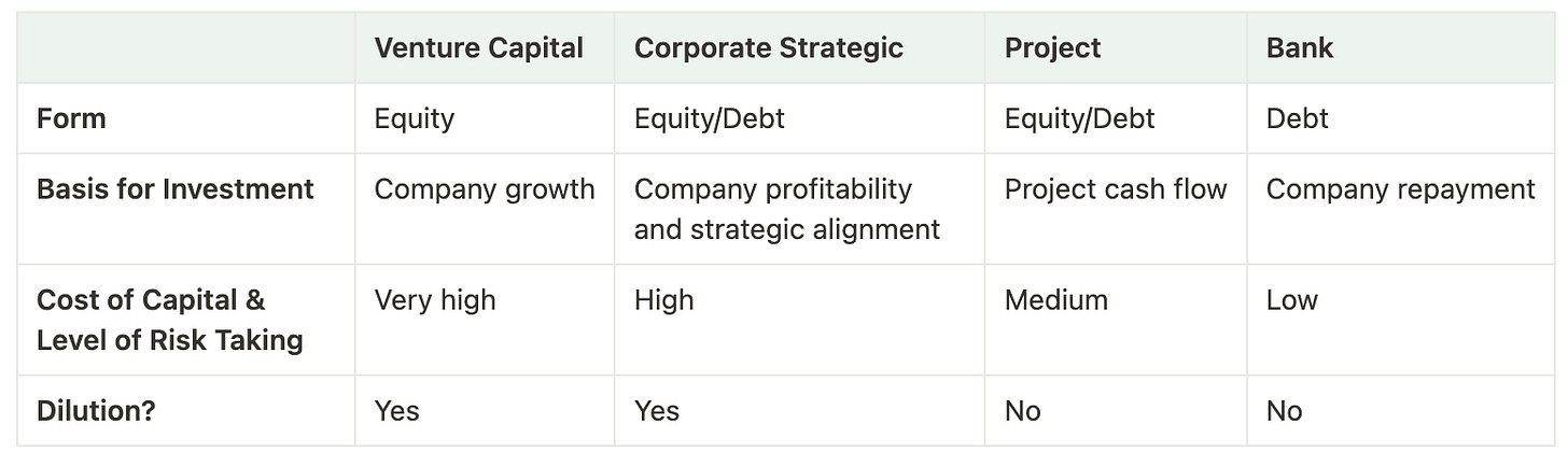 Pairing project finance with large-scale project development experience is key. From my friend Melissa: “Even in “traditional energy” such as LNG, most large scale projects fail - on the British Columbia coast, only 1 of 11 LNG projects led by Shell/LNG Canada ended up producing product after over a decade of development.” Yes, even with well-established tech and well-resourced companies, projects can fail. Experienced teams can mitigate this risk. Startups that are ready to scale-up can hire project talent in-house or partner with aligned industrials to bring down infra costs. There is much more to say on project development more broadly, so we’ll save that for another time.