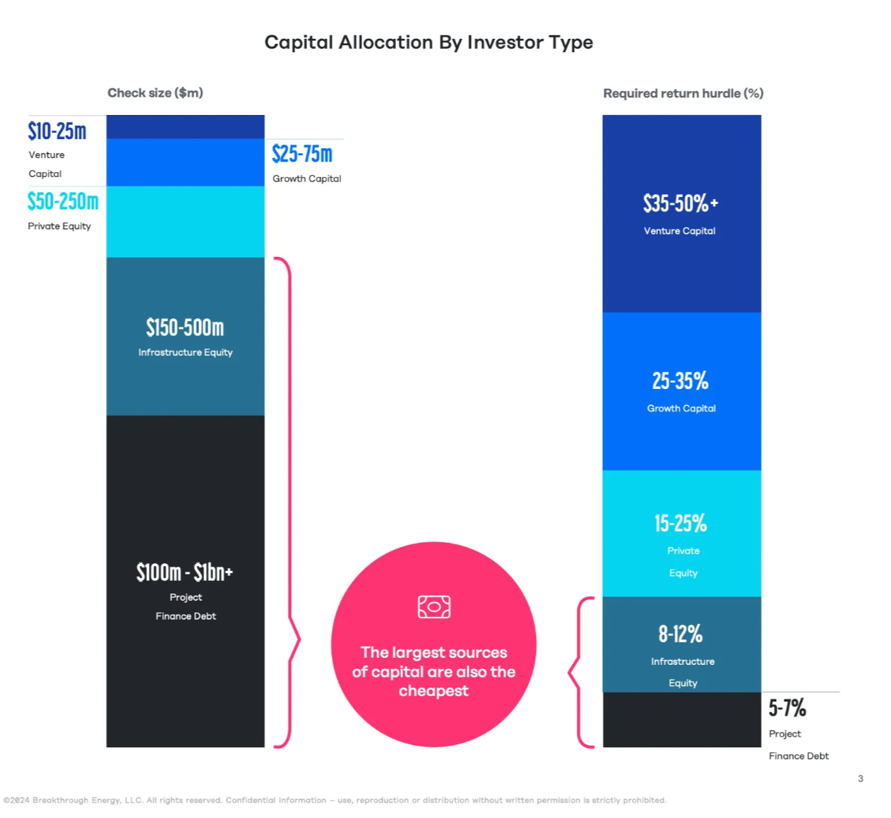 There's a powerful financial tool that makes these projects possible: project finance. This specialized financing approach has been the backbone of infrastructure development for decades, pushing projects forward even when traditional corporate financing isn't feasible. To get to gigaton scale emission reductions, these pools of capital are needed. These capital sources not only provide larger check sizes, but are cheaper in that they require lower returns on investment. The price to pay for capital is lower for these forms of financing.