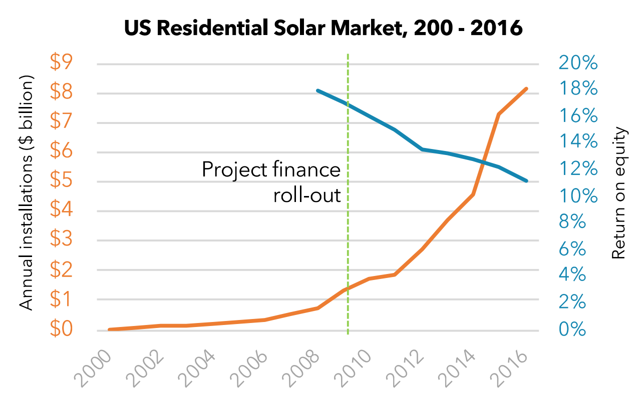 The solar industry provides valuable lessons for financing emerging climate technologies.